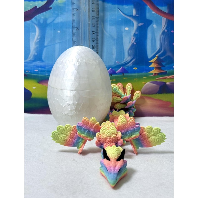 Peacock Dragon and Egg, Feathered Peacock Dragon, 3D Printed Dragon, Articulated Dragon, Fidget Dragon, 3D Printed Toys, Desktop Pet Fidget ADHD Autism Toy D099