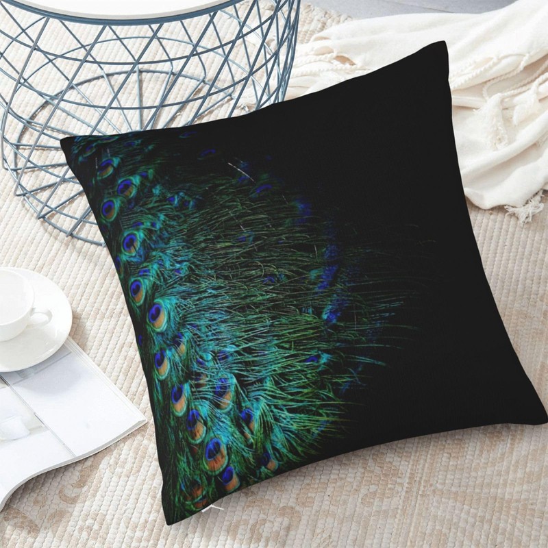 Peacock Feather Throw Pillow Covers 18"X18" Cozy Velvet Square Throw Pillowcases Home Decor For Bed Couch Sofa Living Room Cushion Cover