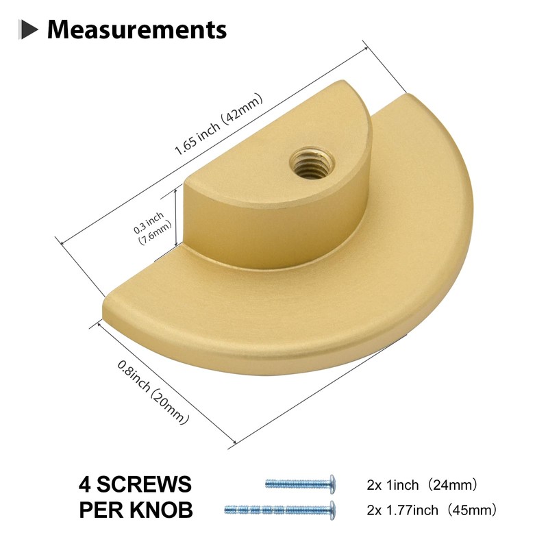 Peaha 2 Pack Half Moon Matte Gold Cabinet Knobs Brushed Brass Drawer Knob
