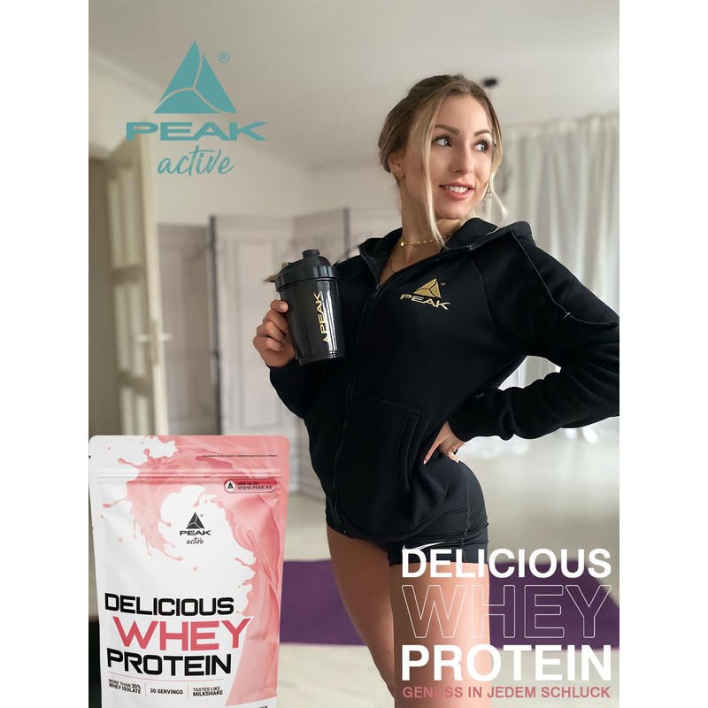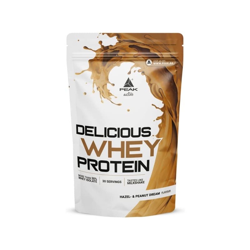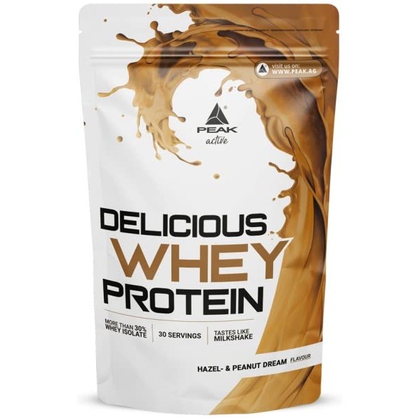 PEAK Delicious Whey Protein - 900 g Flavour Hazel & Peanut Dream I 30 Servings I Powder I Protein Source: Whey Protein Concentrate + Isolate I No Added Sugar I with Digestive Enzyme Lactase