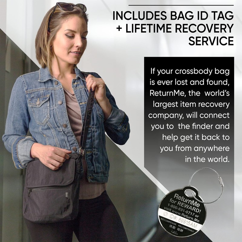 - LIFETIME RECOVERY SERVICE INCLUDED - Quickly and safely recover misplaced handbag. If your crossbody bag is ever lost and found, ReturnMe, the worlds largest item recovery company, will connect you to the finder and help get it back to you from anywhere in the world. Each tag has a unique code that is linked to your secure online portal, keeping your personal information private. Finders have clear contact instructions on the tag and receive a bonus gift as a reward. Service is free for life.