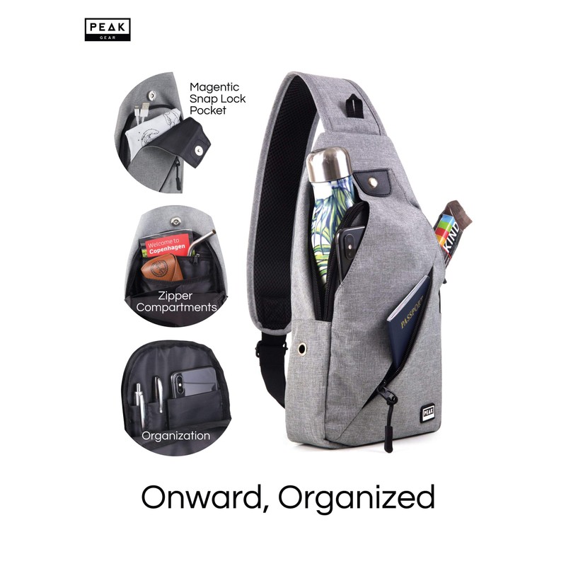 Peak Gear Sling Compact Crossbody Backpack and Day Bag - w/Lifetime Lost & Found ID