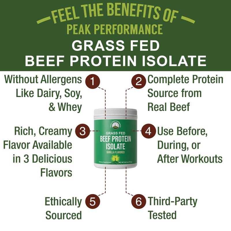 - Tastes Just Like Dessert: Peak Performance Grass-Fed Beef Protein Isolate has a rich, creamy flavor. With 3 flavors to choose from, you can add this protein to any drink or recipe for a delicious way to get whole-food protein. Use before, during or after workouts and between meals for extra protein. Blend for a better mix.