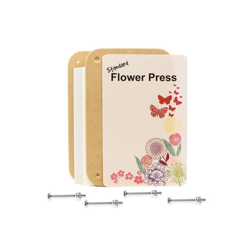 - Good value flower press made of sturdy MDF board. Board size: 275 x 175mm, complete with thick card, white blotting paper, bolts, wing nuts, washers and instructions & record card. The flower press has been left blank for you to decorate in a variety of different ways, paint, Decopatch, stickers, pyrography, etc.