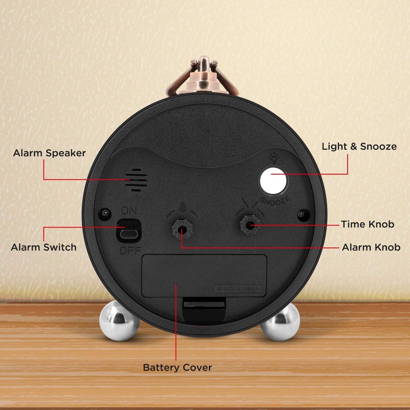 - This vintage retro alarm clock is 4 inches in diameter, metal frame antique design will add funky retro decorative feel to your bedroom, bedside, bookcase, TV table, fireplace mantle etc.