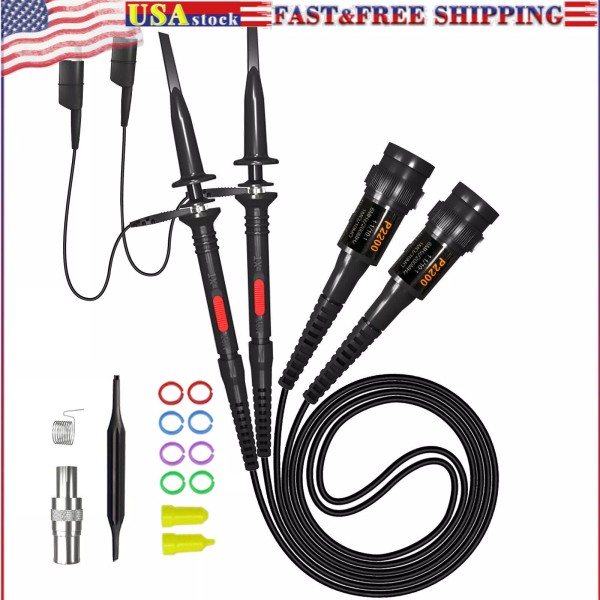 Peakelect 2-Pack Oscilloscope Clip Probes 200MHz with Accessory Kit 1X 10X
