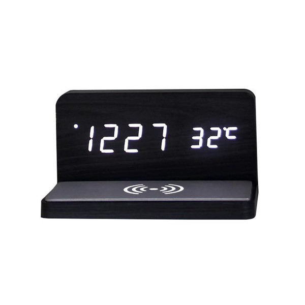 Peakloong 10W Multifunctional LED Wireless Charging Alarm Clock Silent Clock Electronic Clock Wireless Charging Thermometer-Black