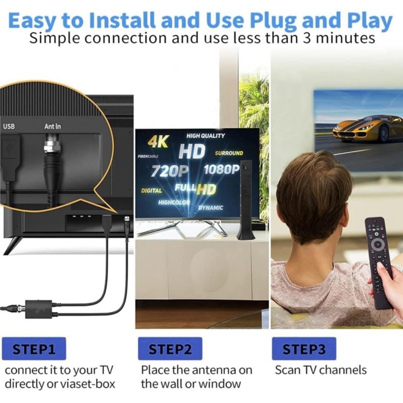 Peakloong Versatile 1500 Miles 35DBI TV Antenna for Indoor/Outdoor/Car Usage, Supports All Old TV Digital Reception with Nd Amplifier