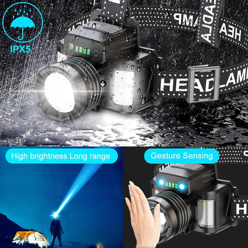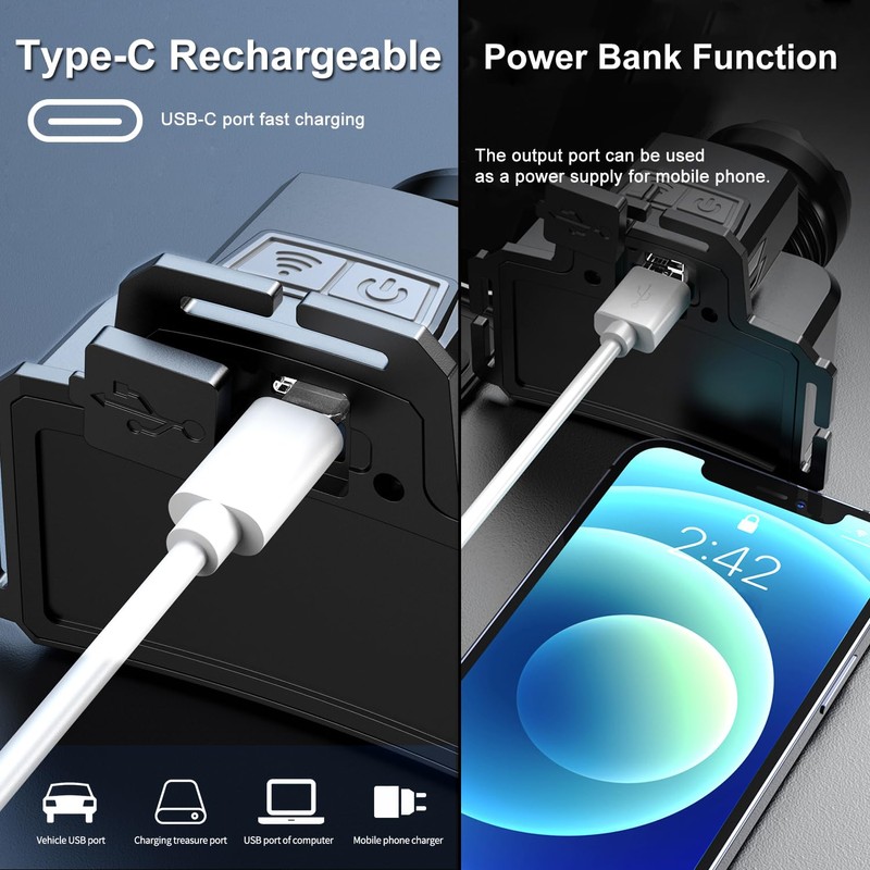 - 【USB-C Fast Charging and Large Capacity Battery】: Rechargeable head torch with built-in 4000mAh large capacity rechargeable battery, providing 4-24 hours of runtime (depending on the modes). Built-in USB-C charging port for faster charging and has battery level indicator. USB output port can be used as an emergency power supply for smartphones or other devices.