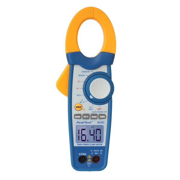 Peaktech true RMS power clamp multimeter, 1000A/240kW with voltage tester/diode tester/ohmmeter and continuity tester, 1 Piece, P 1640