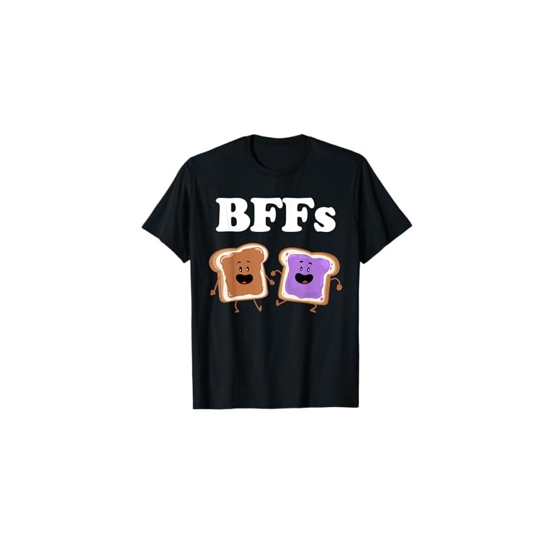 - funny BFFs Peanut Butter and Jelly matching besties tee featuring a cartoon peanut putter and jelly dancing