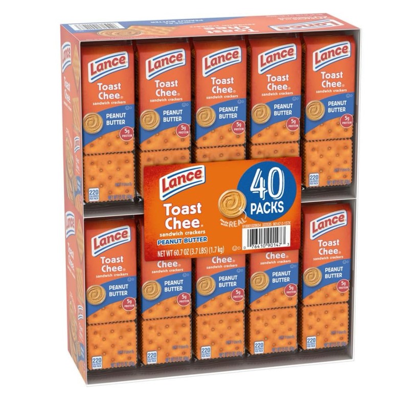 - 🥜 Made with Real Peanut Butter – Creamy peanut butter sandwiched between crispy cheese-flavored crackers. 💪 5g of Protein per Serving – Satisfying and convenient snack to keep you going throughout the day. 📦 40 Individually Wrapped Packs – Each 1.52 oz pack contains 6 sandwich crackers. 🎒 Perfect for School, Work, or Home – Great for lunchboxes, snack drawers, or stocking up. ✅ Quality Snacks – Kosher Dairy certified, no artificial flavors or colors, packed in the USA.