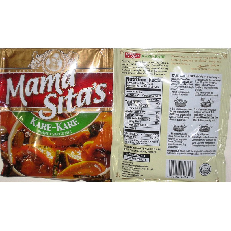 - Mama Sita Peanut Sauce Mix (Kare Kare) Seasoning in 2oz Pack. Nothing is more heartwarming than a bowl of thick and savory Kare-Kare as tender oxtail and tropical vegetables are magically brought together by achuette, toasted rice and finely ground peanuts. The famous Philippines seasoning. Product of Philippines.