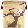 Peanuts SNKN1269 Snoopy Shantung Drawstring Bag, Over Cherry Blossom Tree, Approx. H 7.9 x W 6.2 inches (20 x 15.8 cm)