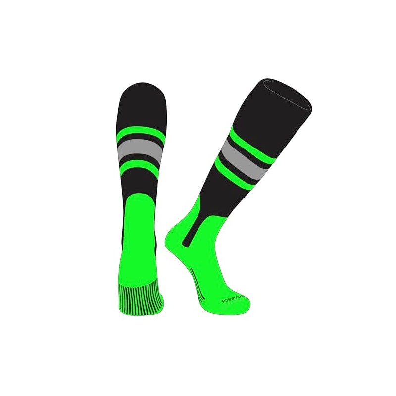 PEAR SOX OTC Baseball Softball Stirrup Socks (B, 7in) Black, NEON Green, Silver, NG (S)
