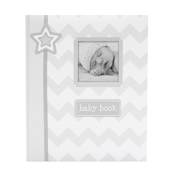Lil' Peach First 5 Years Chevron Baby Memory Book, Newborn Milestone Keepsake Journal Scrapbook, Gift For New And Expecting Parents, 46 Fill In Pages, Gray