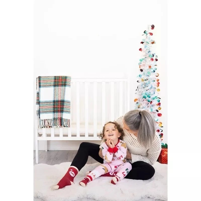 Take your Christmas card photos in style this year with Pearhead’s parent and toddler holiday sock set! This Christmas accessory is the perfect way to get in the holiday spirit. The parent and toddler holiday sock set includes one pair of socks for mom or dad and one pair for a toddler, ages 6-12 months. The socks are fun and festive, with holiday red and white colors and a Santa Claus print on each sock.