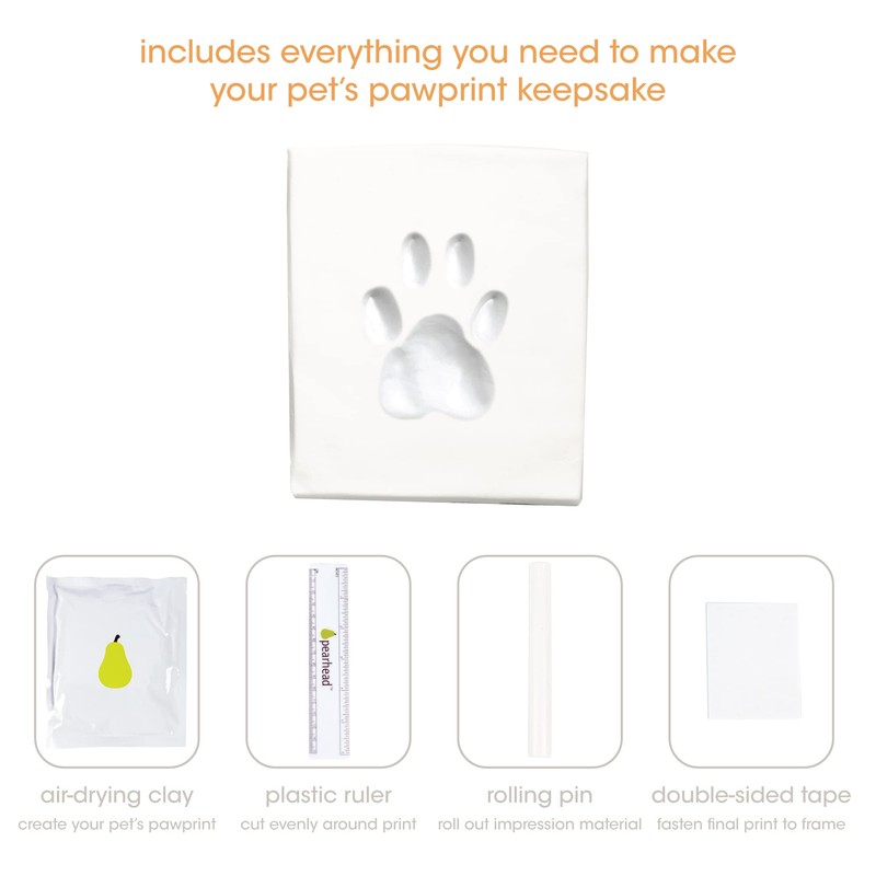 • Pet Safe Pet Products: This DIY pawprint keepsake is easy to create and 100% pet safe; it includes enough clay for small pets and large pets. Photo Insert; 4"W x 6"H Frame Dimensions: 11.75" W x 7.6" H x 1.37" D