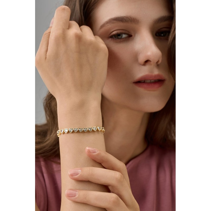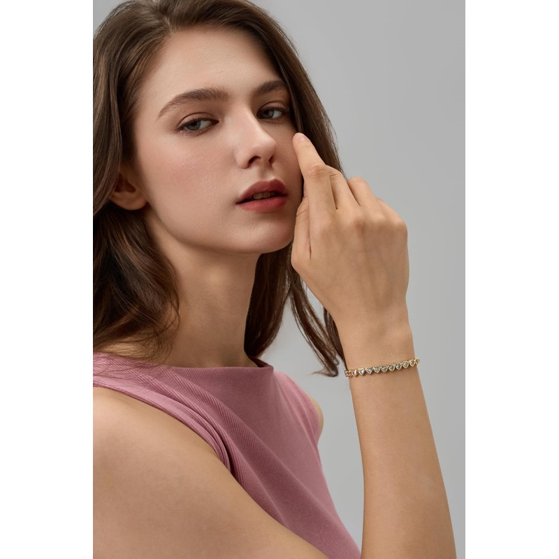 - Elegant Design-This gold heart tennis bracelet exudes elegance and sophistication with its classic tennis style. The well-proportioned links create a seamless and smooth look that effortlessly elevates any outfit. Whether for formal events or daily wear, this gold tennis bracelet for women is a versatile addition to your jewelry collection