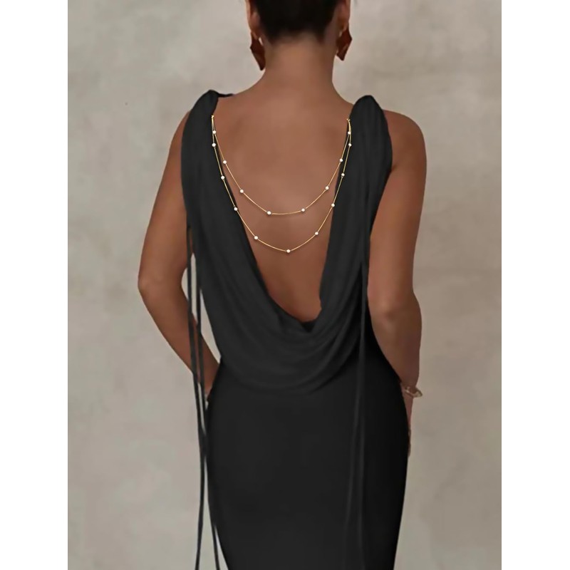 - VERSATILE DESIGN: Double-layered back chain necklace featuring delicate pearls, perfect for wedding dresses, evening gowns, or any backless attire