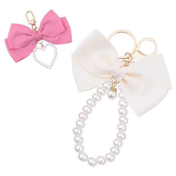 - Bag Handbag Zipper Charms for Shoulder Bags Wallets Quality: White bow charm tote bag 16x11 cm, pink bow pearl keychain for bags handbags 11x5 cm, made of high-quality alloys and faux pearls, environmentally friendly, skin friendly, hypoallergenic, handbag purse hand wrist keychains for backpacks shoulder bag, bow heart shaped keychain for shoulder bags handbag, makeup bag charm for tote bag handbags