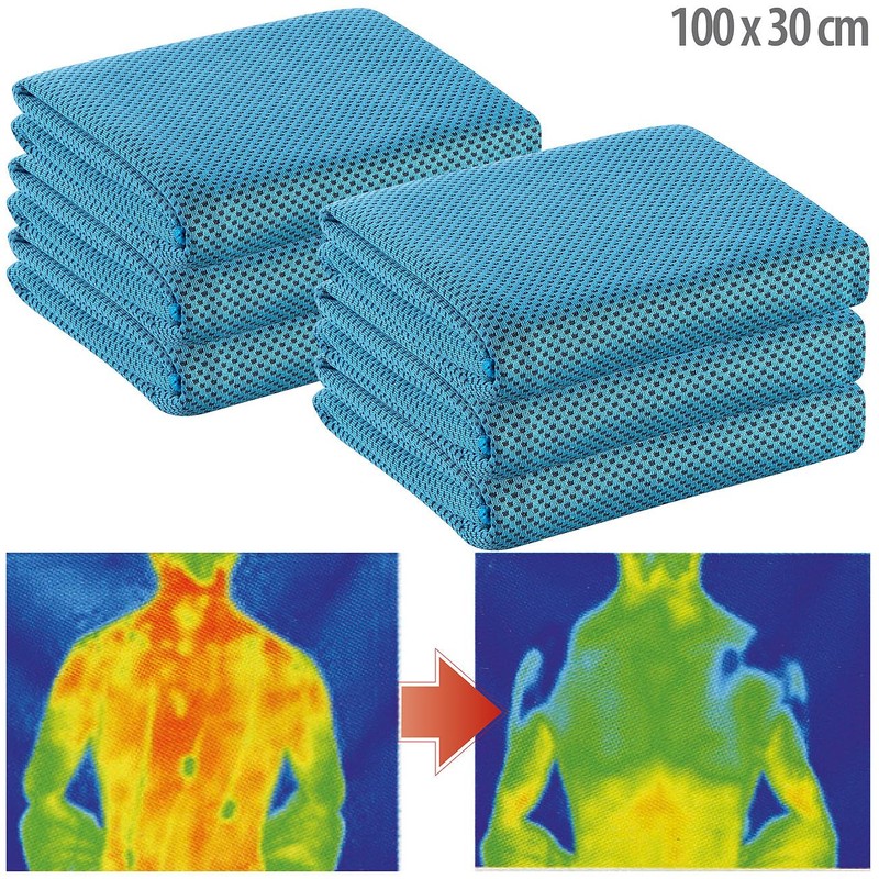 - Cooling multifunctional cloths in a practical set of 6. Activate cooling effect: wring and shake out. Perfect for hand luggage: space-saving and quick-drying. Dimensions: 100 x 30 cm, weight: 47 g