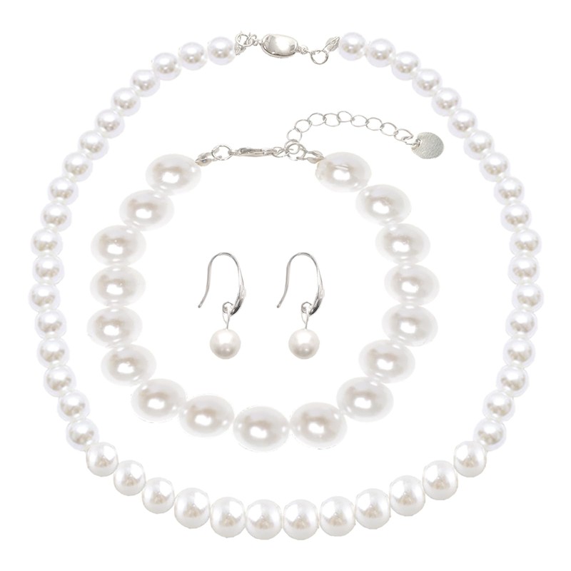 - Elegant Pearl Jewelry Set: Pearl jewelry set comprises an 8mm faux pearl necklace, a matching bracelet, and a pair of earrings, this pearl jewelry set is ideally crafted for women who appreciate elegance