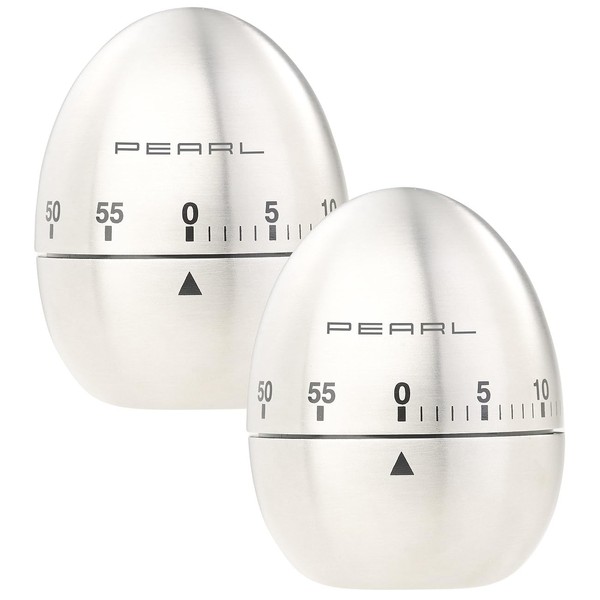 PEARL Mechanical Kitchen Timer, Set of 2 Stainless Steel Egg Timers, 60 Minute Timer (Mechanical Timer for Egg)
