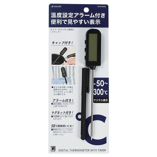 Pearl Metal HAKARI D-6563 Digital Thermometer with Timer, Black