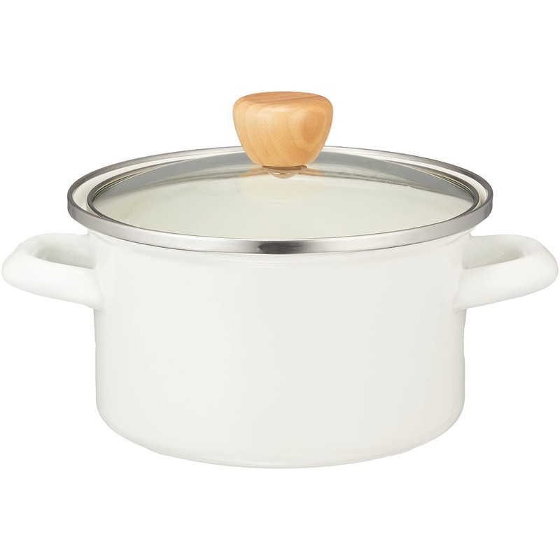 Pearl Metal HB-1367 Enameled Two-Handled Pot, 5.9 inches (15 cm), Glass Pot with Lid, White, Induction Compatible, Cook Pot, Petite Cook