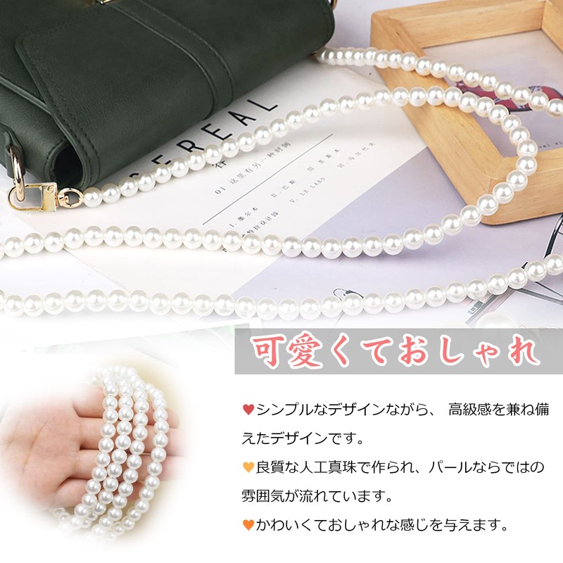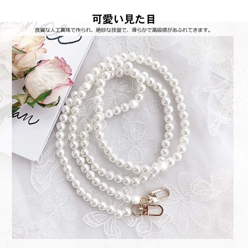Pearl Strap, Pearl Chain, 47.2 inches (120 cm), Pearl Bag Chain, Replacement Chain, Shoulder Chain Replacement, DIY, Pearl Chain Strap, Bag Chain, Cute, For Smartphones, Wallets, Shoulders, Pearl Chain, Mesanda (White)