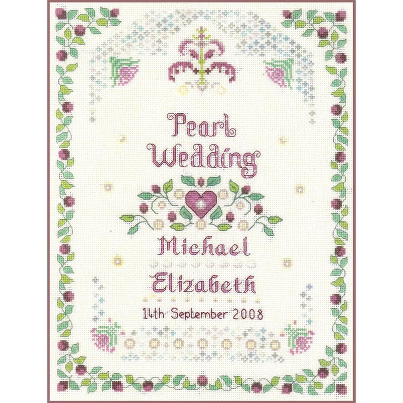 Pearl Wedding Anniversary Sampler - Complete Cross Stitch kit on 14 aida with Clear Colour Chart
