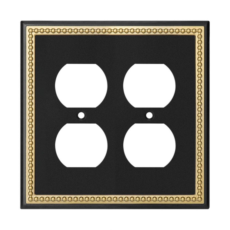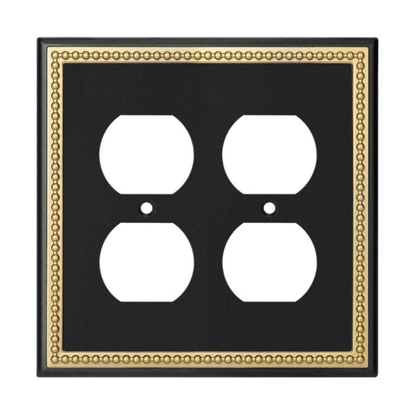 Pearled Frame Decorative Wall Plate Switch Plate Outlet Cover (Single Toggle 2PK, Black & Dark Golden)