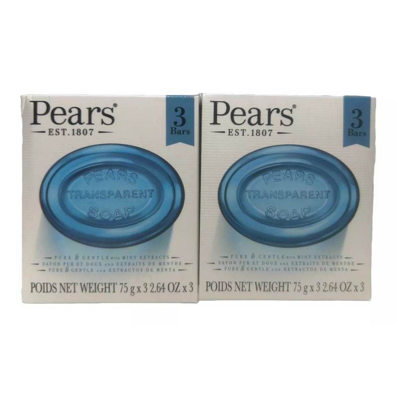 Pears 6 BARS Pears Bar Soap With Mint Extract, Germ Shield 75G, 2.64oz (2 PACKS OF 3)