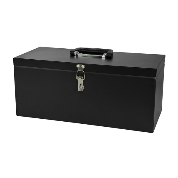 Peastorm Small Steel Metal Tool Box, Lockable Storage Box for Storing Valuable Items, Office Documents, Garage Tools (16" Black)