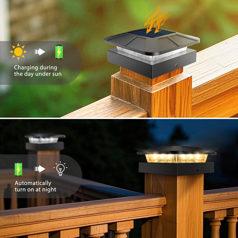- Waterproof & Durable: Designed to withstand the elements, 4x4 solar post cap lights are completely waterproof for outdoor use. Whether it's raining, snowing or shining, solar post lamp continue to work reliably to provide lighting