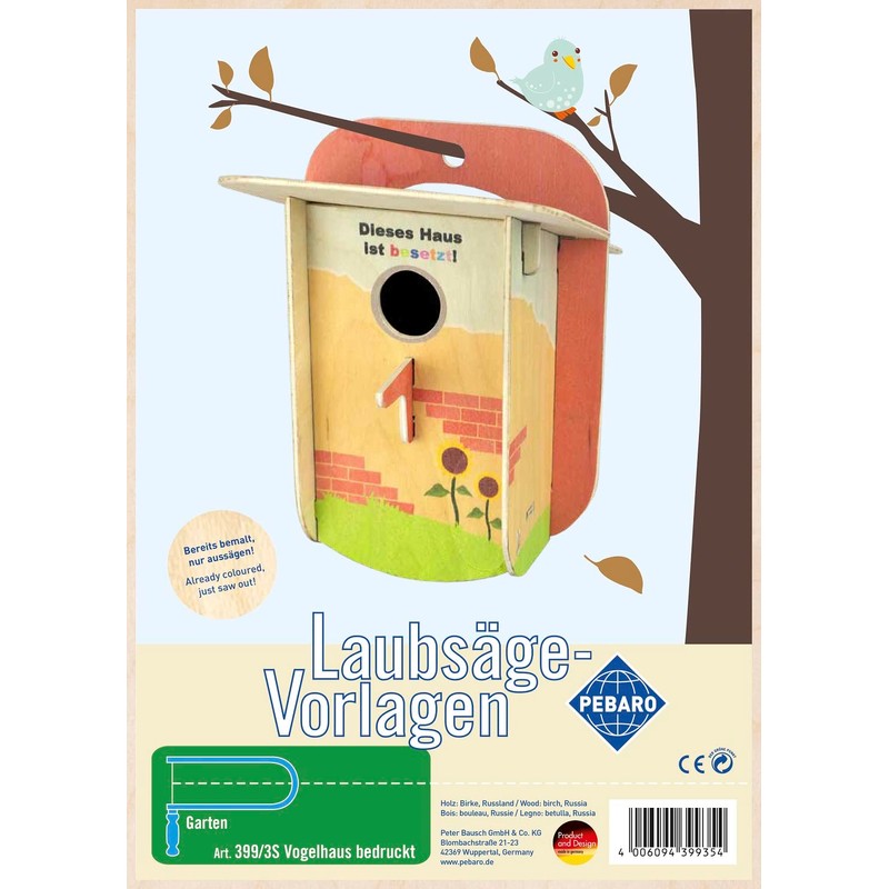 Pebaro 399/3S Fretsaw Template Bird House Colourful Printed, 3 mm Plywood DIN A4, Motif Pre-Printed with Fretsaw Bow, Crafts, Ready, Fretsaws, Wood, Gift Idea, Nesting Box, Garden