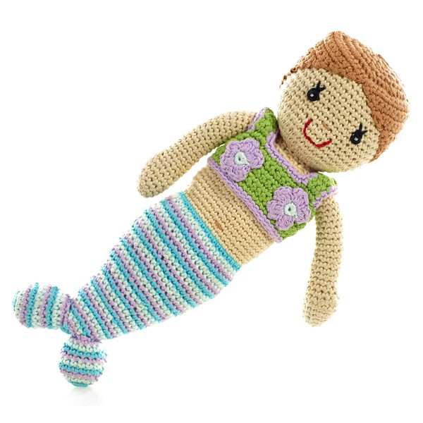 Pebble | Handmade Mermaid Doll—Turquoise | Crochet | Fair Trade | Pretend | Imaginative Play | Beach | Machine Washable