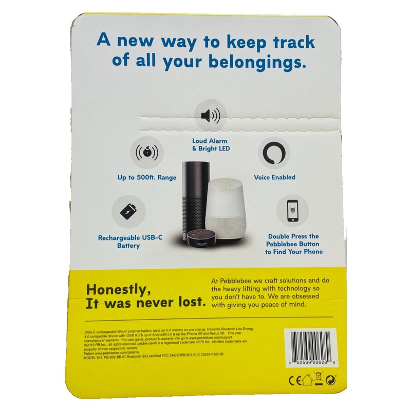 Easily keep track of your valuable items with the Pebblebee Finder 2.0 BlackCard. This Bluetooth locator boasts a impressive 500-foot range, allowing you to quickly find your belongings in large spaces or across multiple rooms. The sleek design fits seamlessly into any setting, whether you're at home, at the office, or on the go.The PB-602-BB model is crafted for simplicity and reliability, featuring intuitive one-button pairing and a robust, easy-to-read display. With the convenience of the Pebblebee Finder 2.0, you'll never lose sight of your essentials again.