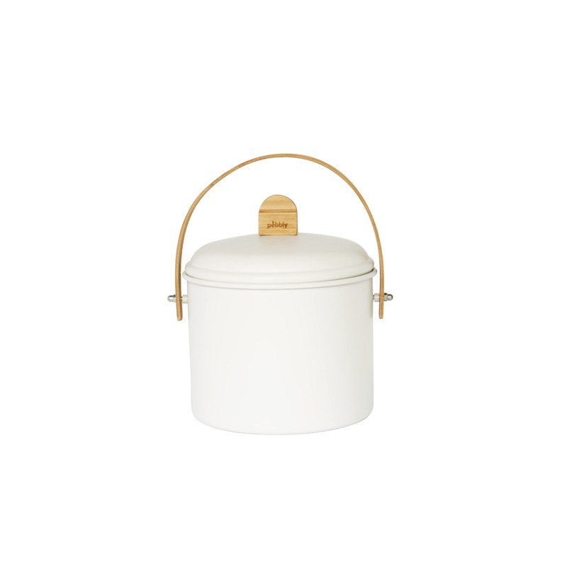 Pebbly NBA202 Seau à Compost d'Intérieur Kompost Bucket S, Metal, Bamboo, Charcoal, Cream