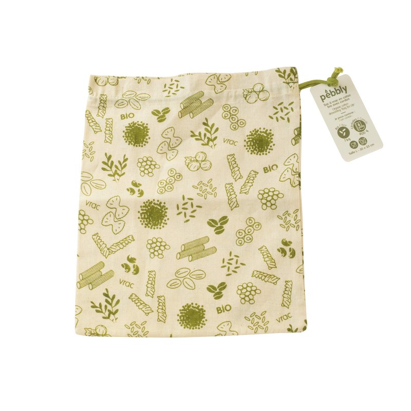 - Bulk bag made of natural, high-density organic cotton, which prevents crumbs from escaping.