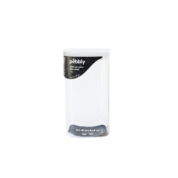 Pebbly Square Glass Container with Glass Lid 1.4 L