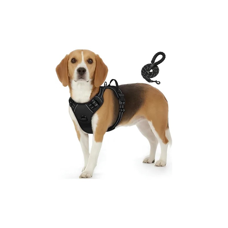 Ahora tenemos el arnés para perros sin tirones para ti. La mayor ventaja de esta correa en comparación con otras marcas es que tiene hebillas anidadas. No es necesario llevarlo sobre la cabeza cuando se usa, lo que proporcionará la máxima comodidad. Y no es necesario que aflojes la franja del cuello cada vez que te la pones y te la quitas. El arnés viene con 4 correas ajustables que permiten que su perro se ajuste cómodamente al arnés. Ajustable a ambos lados del cuello y pecho. No hay necesidad de preocuparse de que su perro se resbale o se ahogue. Le proporcionamos manijas de control acolchadas para facilitar su uso en el tráfico. No te decepcionarás con nuestros mazos de cables.