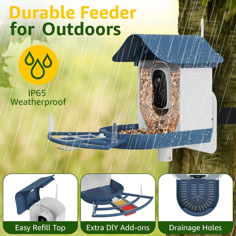 • 【User-friendly & Easy Setup】Setup is a breeze—just connect via 2.4G WiFi (not fit 5G) and enjoy! It can be mounted anywhere in your backyard (strap/drill/polemounting). The transparent seed tray makes refilling simple, perfect for hassle-free bird feeder with camera use. A durable bird watching gift for family and friends. Gift choice for Mother's Day, Father's Day, birthday, Christmas, Valentine's Day, etc.