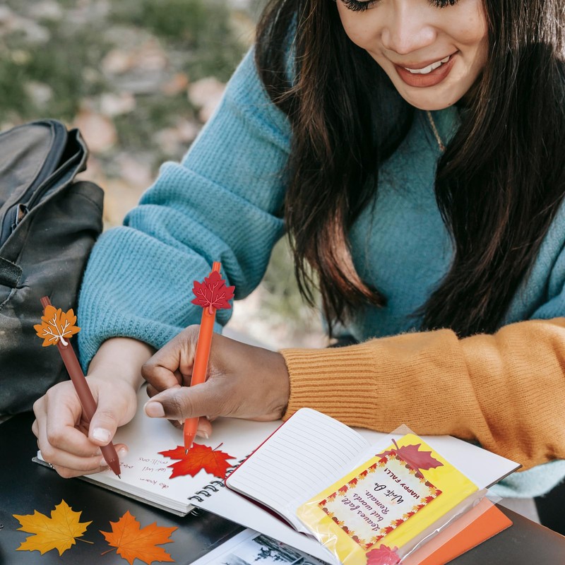 - High-Quality Materials: These autumn pens are made of high quality plastic, while notebooks, bookmarks, and stickers use thick, premium paper for durability and a pleasant feel.