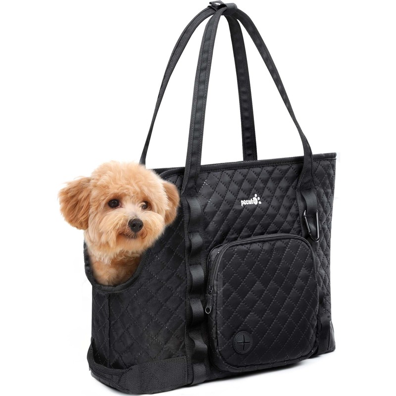 Pecute Dog Purse Carrier, Dog Carrier with Pockets for Small Dogs, Fits Dogs 5.5 lbs to 11 lbs, Cat and Puppies Tote Bag, Outing, Travel, Vet, Black
