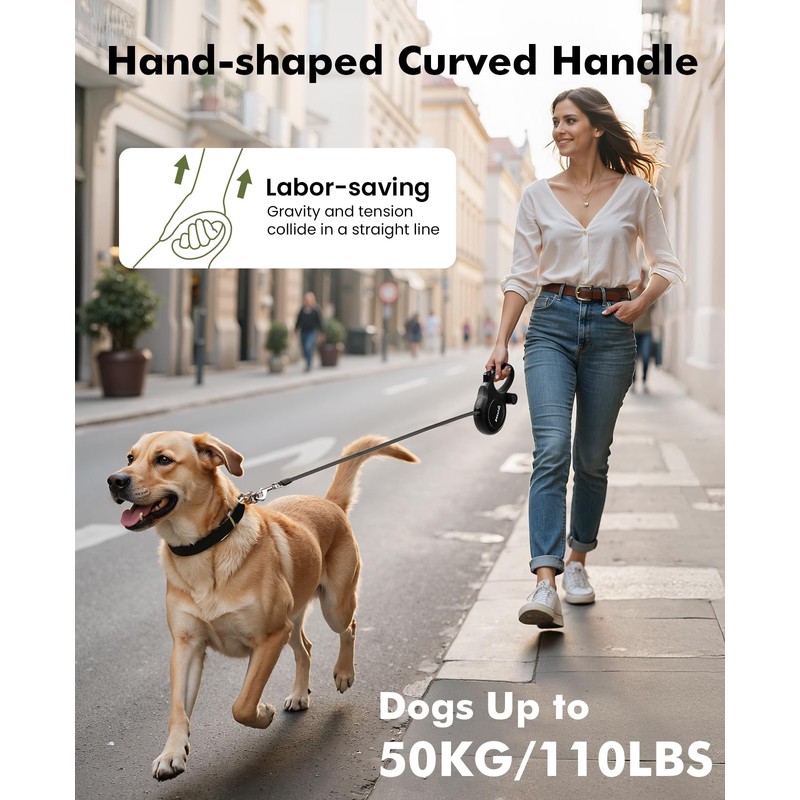 - 【Effortless One-Handed Control】Take full control with this 2025-upgraded Pecute extendable dog lead. It features a robust and secure locking system that lets you pause, release, or lock the lead effortlessly with just your thumb – offering convenience and safety for both you and your dog.