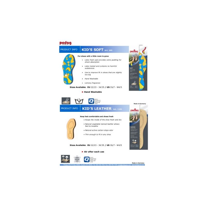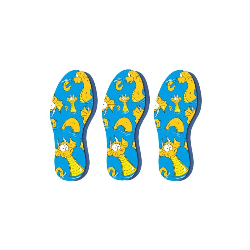 Pedag soft for kid's: the colorful fabric surface has a playful friendly dragon. Kid's soft is skin tested, hand washable, with a pleasant lemon fragrance. Soft provides a cushioned layer that is perforated for improved air circulation. Use kid's soft when shoes are a little too loose or the shoe has too little padding. Soft is also good for sensitive feet. Soft is hand washable with mild soap and air dry.
