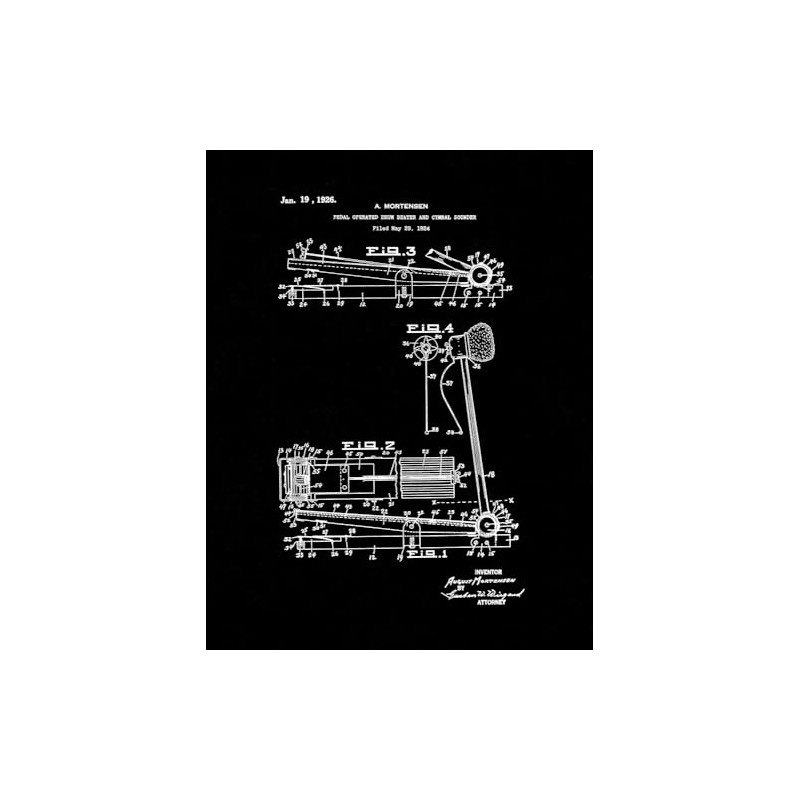 Pedal-Operated Drum Beater and Cymbal Sounder Patent Print Black Matte (18" x...
