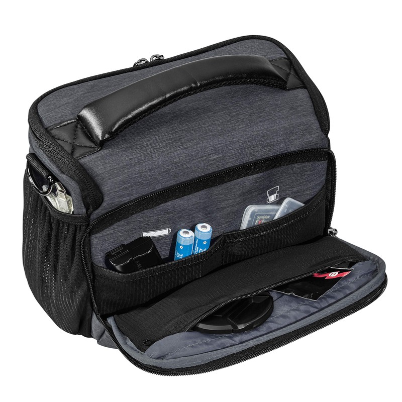 - Viel Stauraum für DSLR, Bridge- und Systemkameras mit kleinerem bis mittlerem Objektiv, Ersatzobjektiv, Datenkabel, Akku, Speicherkarte und anderes Zubehör